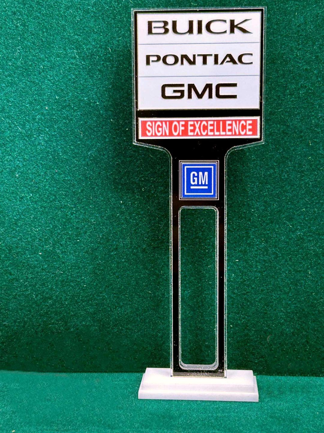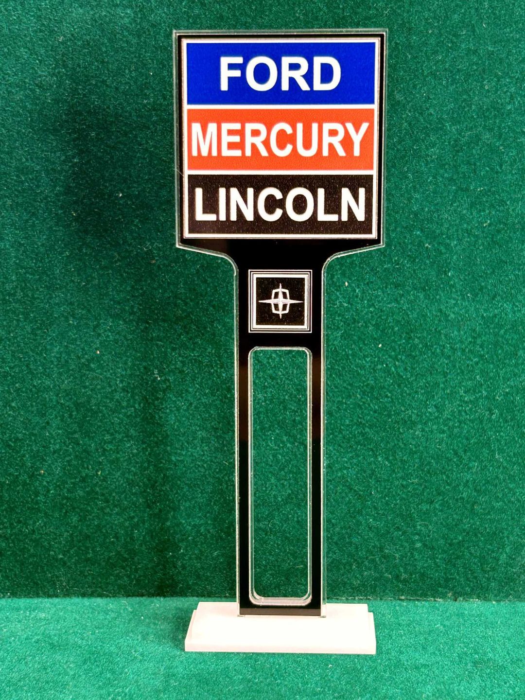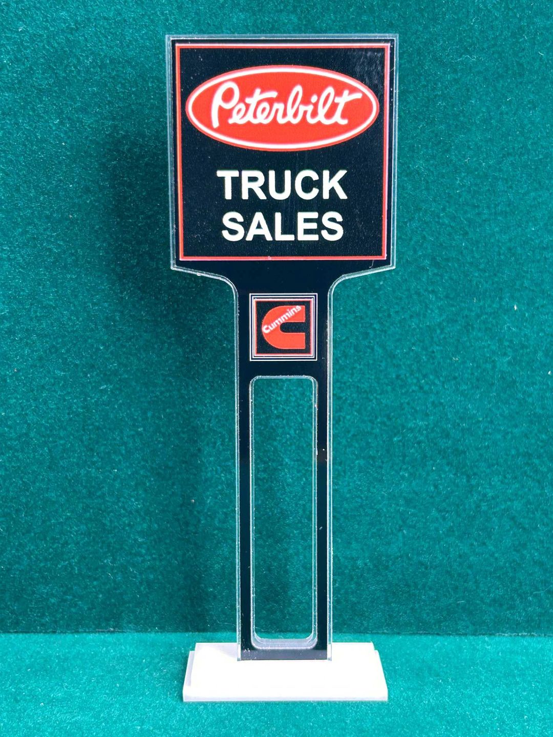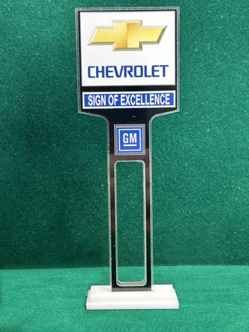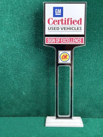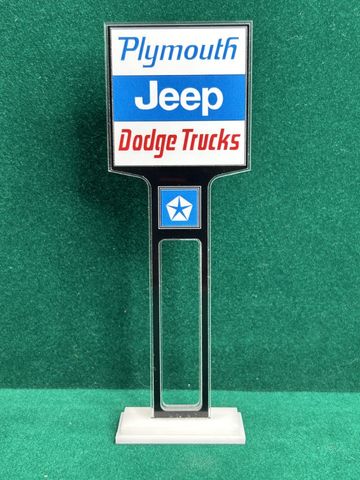 ** UNLESS OTHERWISE NOTED ** The Dealership Lot Signs consists of 1/8” thick, clear acrylic core with a black acrylic overlay on both sides. The base is double layer 1/8” white acrylic. Approximate Size of the Dealership Lot Sign is 6” tall and 2” wide / Approximate Size of the Base is 1.875” x 0.875”.The high resolution graphics are printed on automotive grade vinyl.