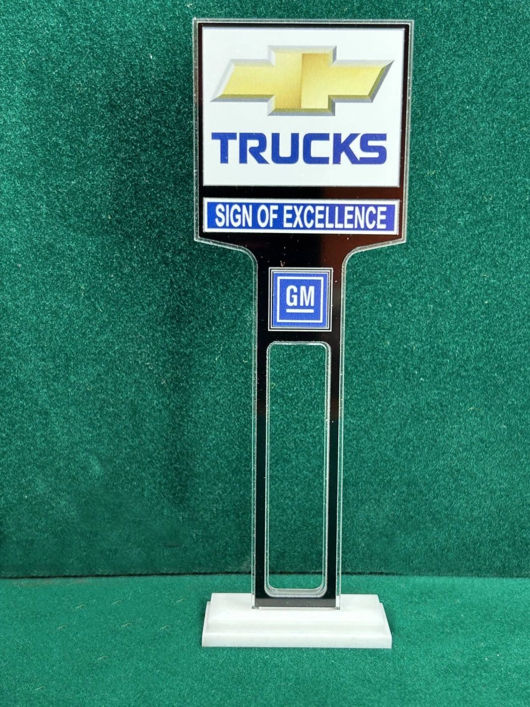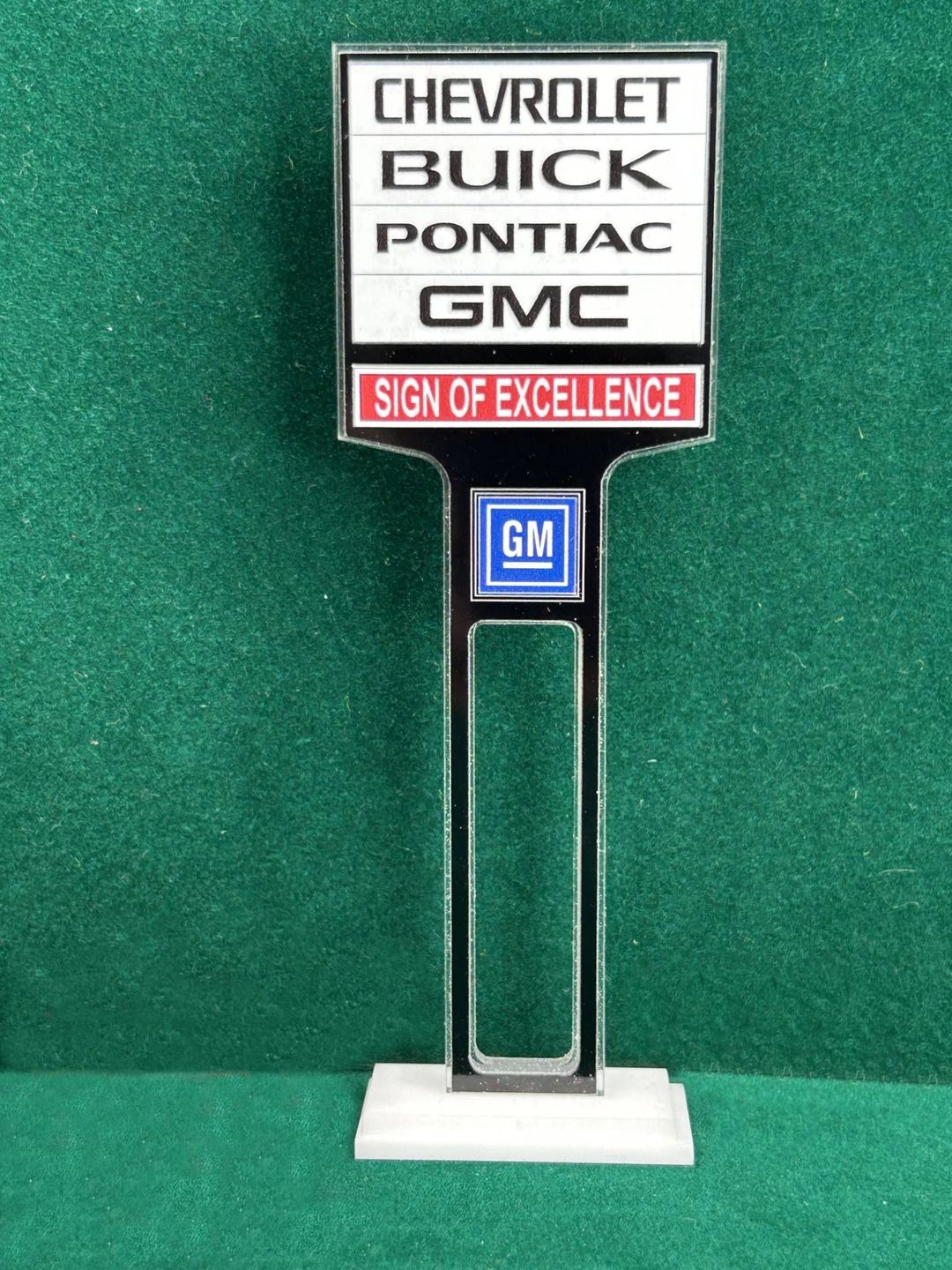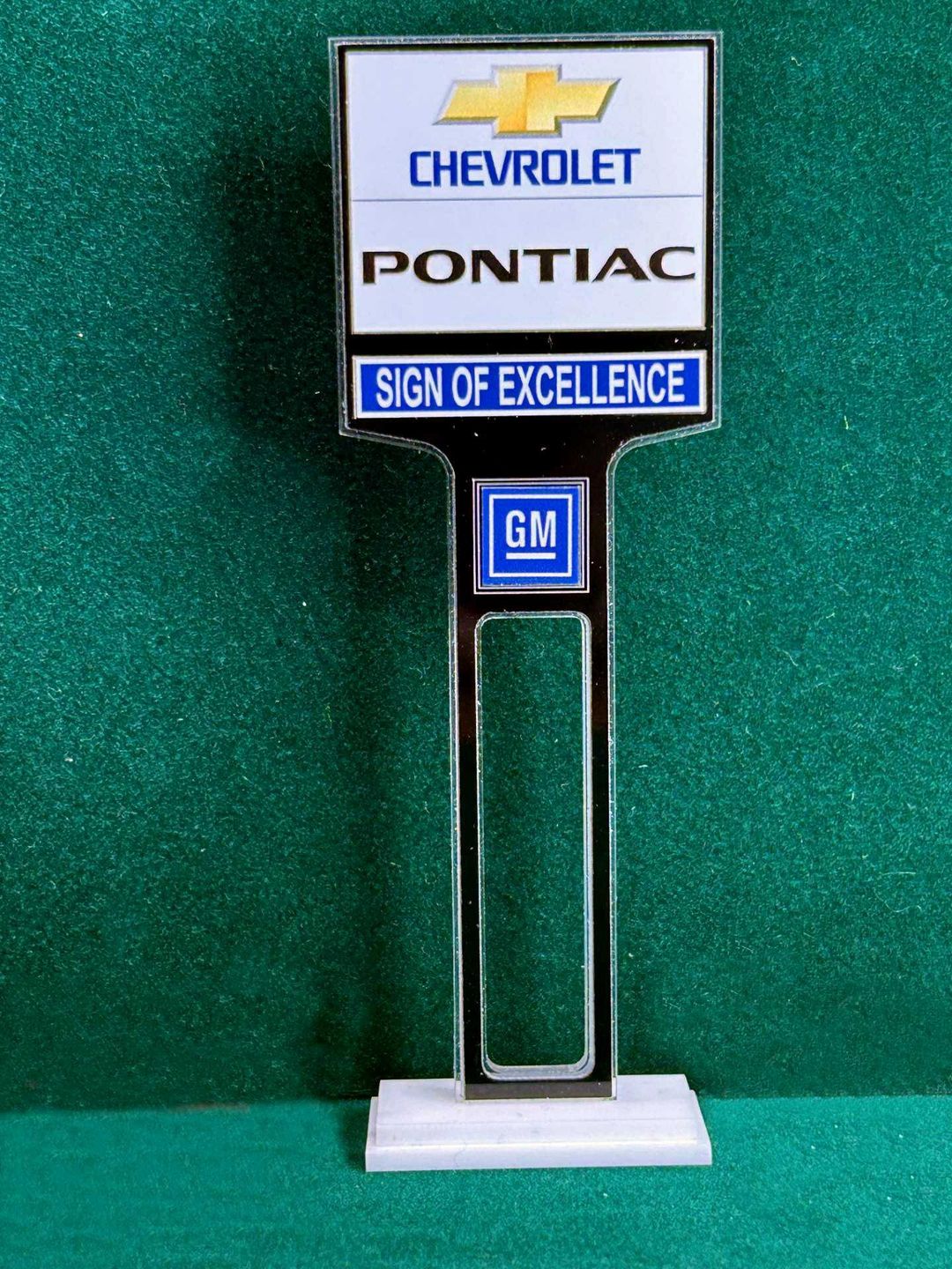 ** UNLESS OTHERWISE NOTED ** The Dealership Lot Signs consists of 1/8” thick, clear acrylic core with a black acrylic overlay on both sides. The base is double layer 1/8” white acrylic. Approximate Size of the Dealership Lot Sign is 6” tall and 2” wide / Approximate Size of the Base is 1.875” x 0.875”.The high resolution graphics are printed on automotive grade vinyl.