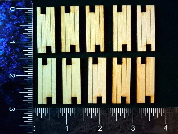 HO Scale. The sheet consists of 40 - brackets. Enough replacements for 5 coil cars. 0.024" laser board. Ruler not included.