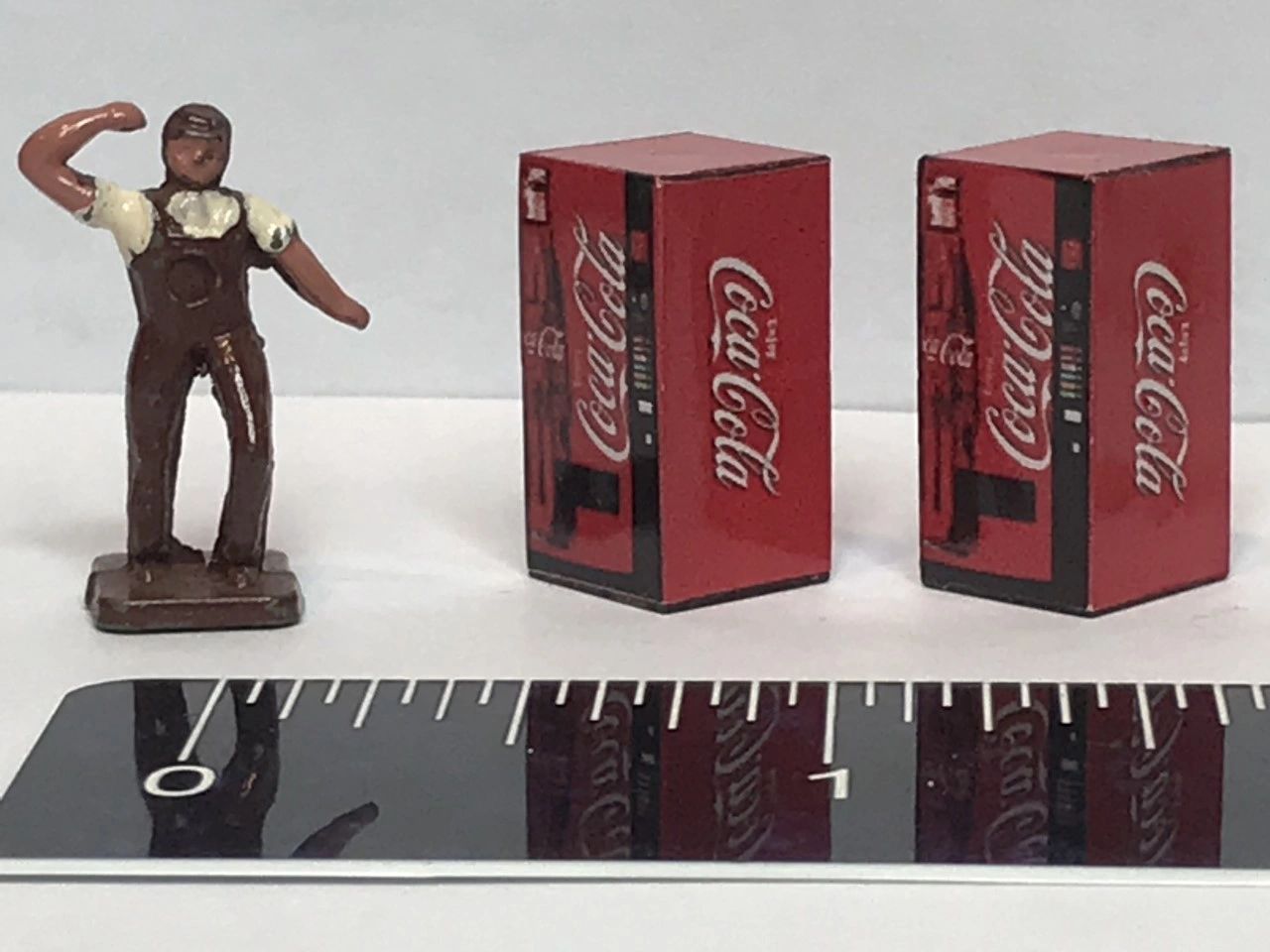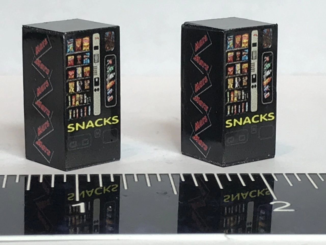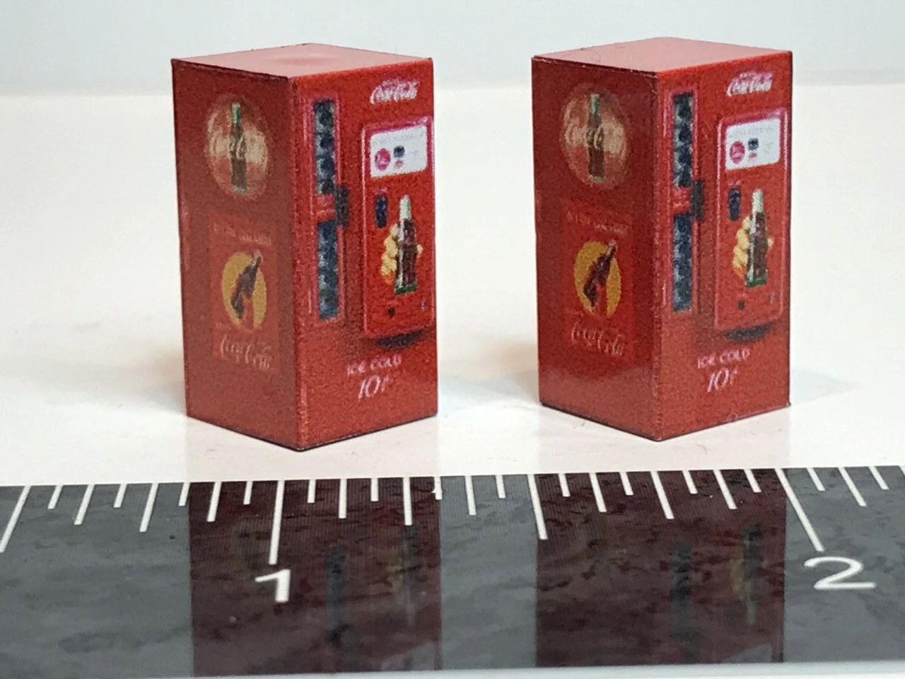 HO Scale. Coke Cola, Pepsi Cola, Snack #1 and Snack #2. Solid plastic core with printed vinyl wrapper. Ruler not included.
